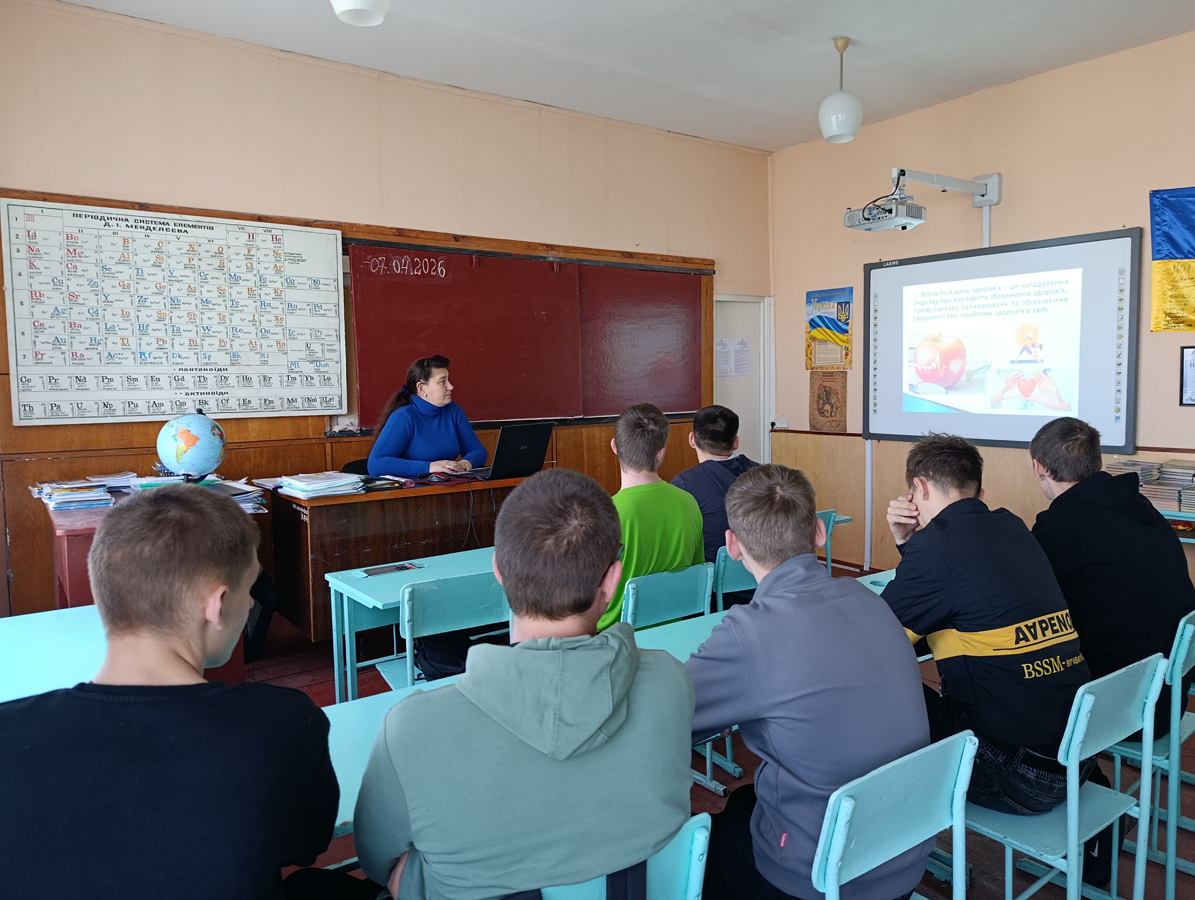 Разом із Ларисою Миколаївною здобувачі освіти розбирали «піраміду здоров’я», дискутували про вплив шкідливих звичок на організм та ділилися