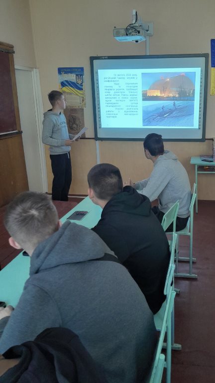 Для здобувачів освіти групи №1 ДНЗ «Іркліїський професійний аграрний ліцей» класний керівник Лариса Миколаївна Черненко провела виховну годину «Чорнобиль – трагедія століття». Під час заходу були розглянуті питання щодо історії ЧАЕС, а також причини та наслідки катастрофи не лише для України, а і для всього населення планети.