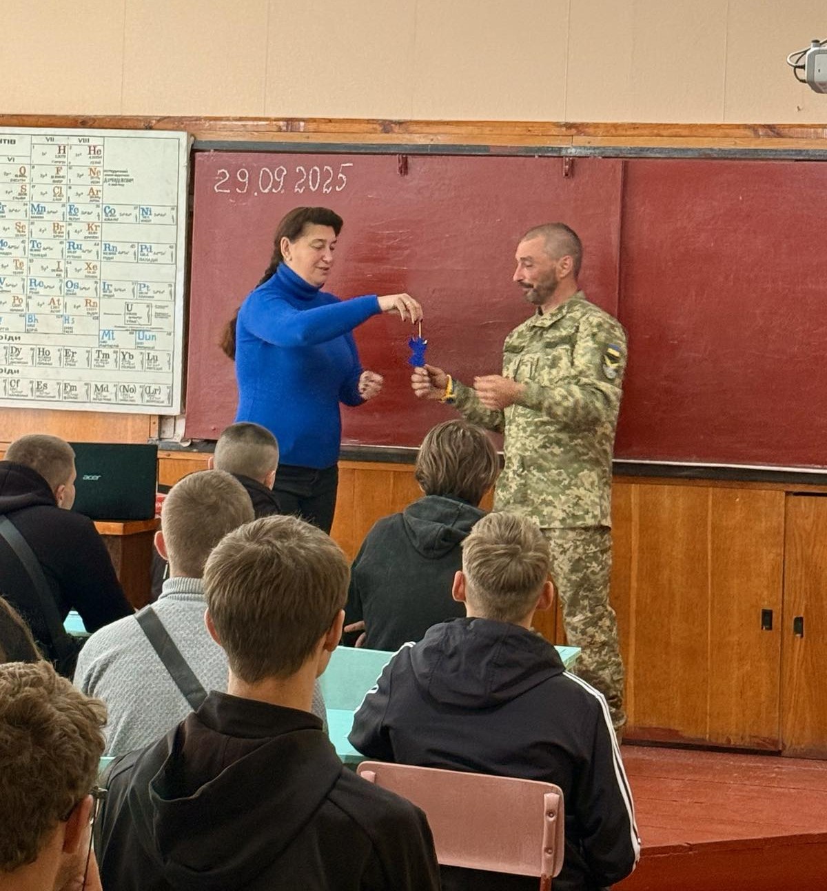 Дмитро розповів про свій бойовий шлях, починаючи від АТО до сьогодення. Здобувачі освіти із захопленням слухали розповіді воїна про бойові будні та братерство, про отримані нагороди, а також про різні види озброєння, до медичну допомогу, важливість фізичної підготовки та багато іншого. Дітям було цікаво все, вони задавали безліч запитань.