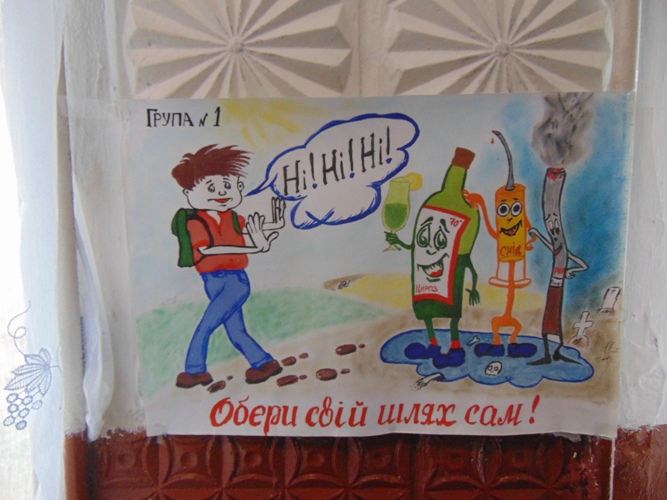 - Оформлено стенд «Бій шкідливим звичкам» на якому розміщена інформація про негативні наслідки від вживання алкоголю, наркотиків та тютюну