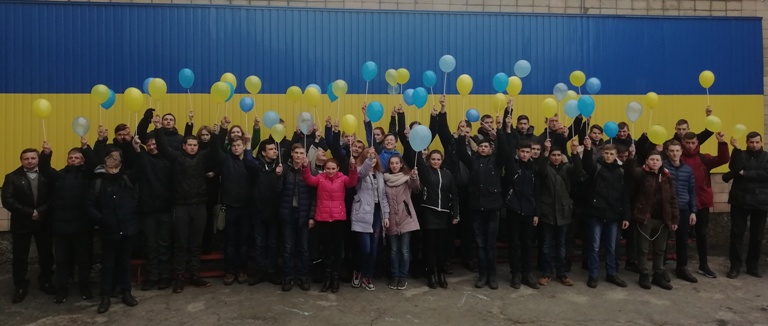 Під час проведення флешмобу учасники використали атрибутику з державними символами України, хвилиною мовчання вшанували пам'ять Героїв Небесної Сотні, запустили жовто-блакитні кульки, як символ пам’яті про тих патріотів України, хто віддав найцінніше і відійшов у вічність. З надією та вірою у процвітання рідної України, на завершення флешмобу учні виконали Державний Гімн України.