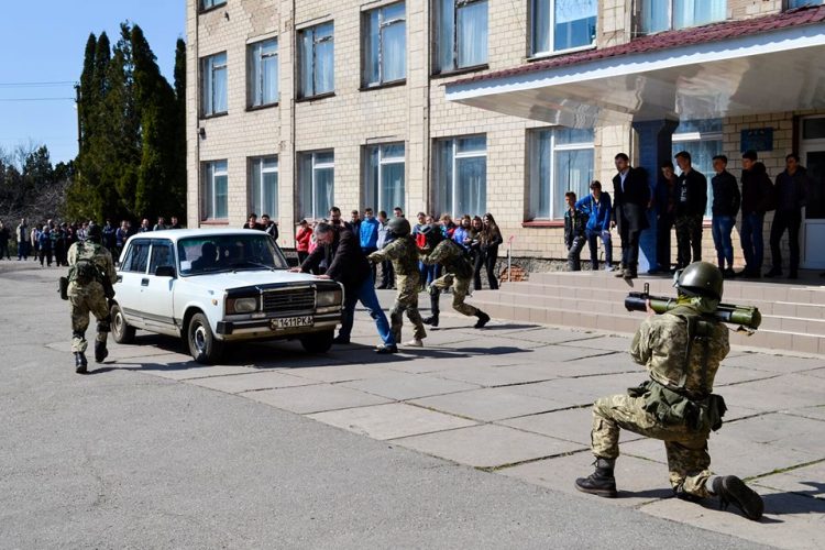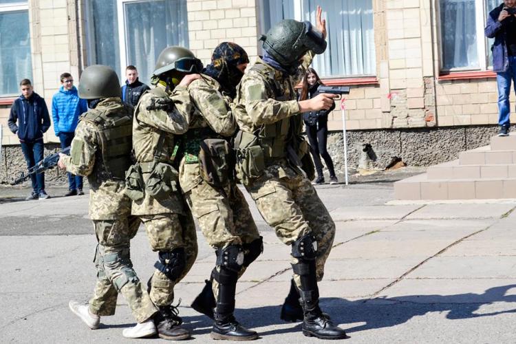 Також гостям закладу продемонстрували один з різновидів позакласної роботи, яка проводиться в ліцеї, а зокрема вихованці військово-патріотичного гуртка «Захисник» показали майстер-клас по основам військової підготовки.
