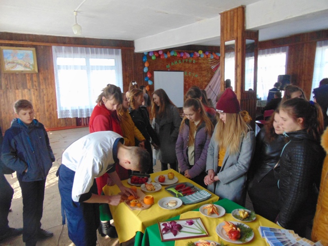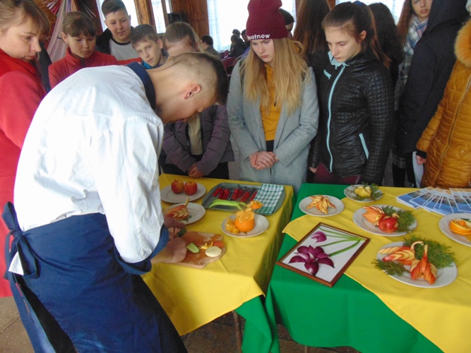 Учні та педагогічні працівники провели для присутніх цікаві майстер-класи з професії кухар, тракторист-машиніст сільськогосподарського виробництва, водій автотранспортних засобів. Школярі мали змогу власноруч спробувати себе у ролі майстрів карвінгу та повчитися правильно вирізати різноманітні фігурки з фруктів та овочів, створювати казкові композиції. Також була організована ознайомлююча екскурсія у майстерні та лабораторії закладу, яка дала можливість на власні очі побачити матеріально-технічну базу з різних професій.