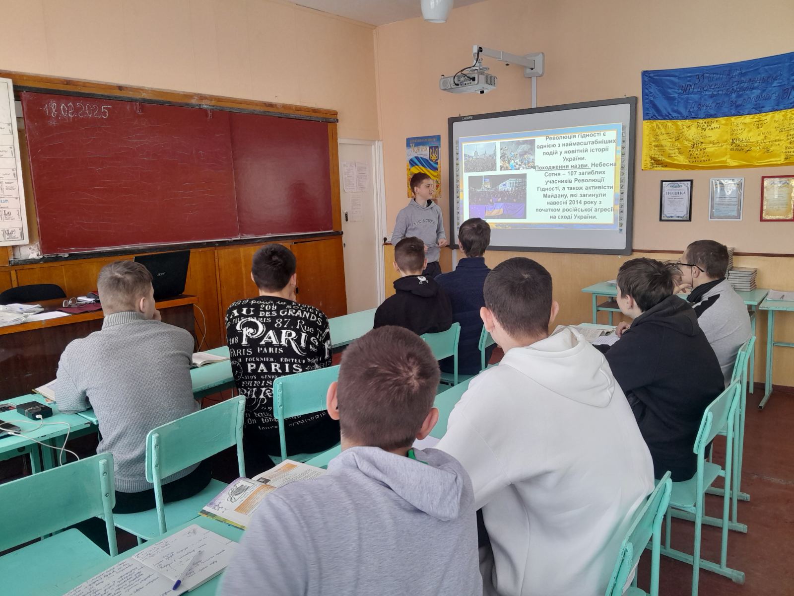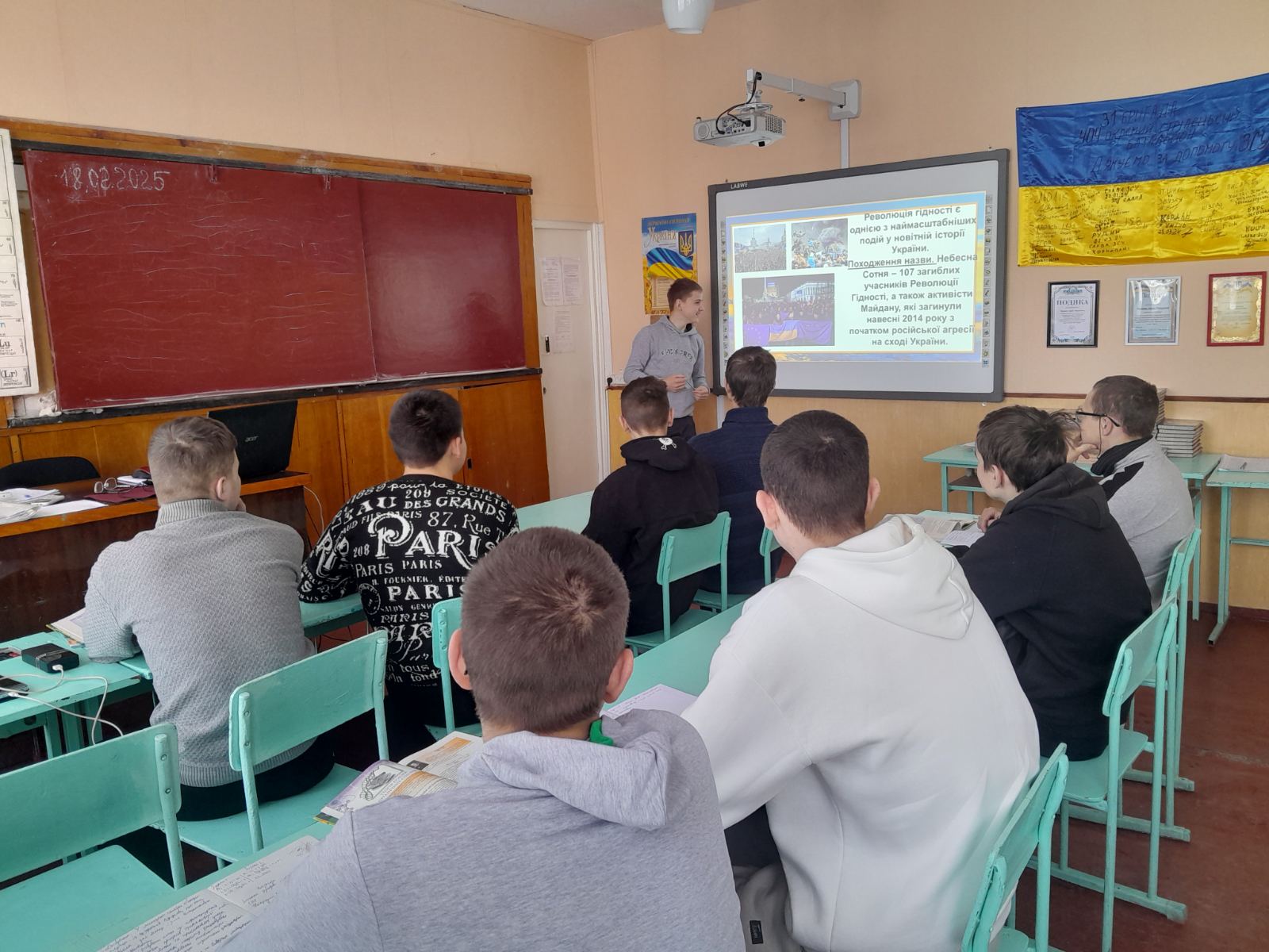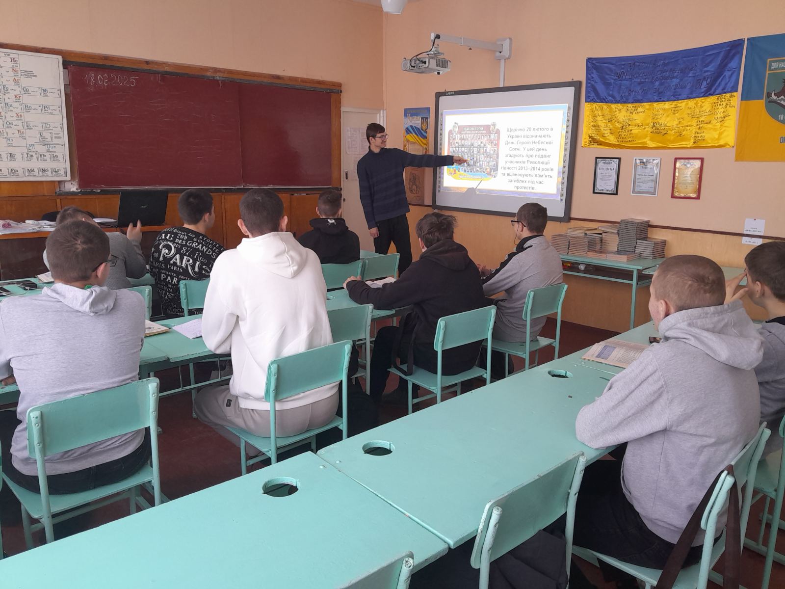 Класний керівник групи №1 Лариса Миколаївна Черненко провела виховну годину на тему «Ангели пам’яті». Здобувачі освіти ліцею підготували короткі розповіді про події тих часів та вшанували хвилиною мовчання всіх полеглих Героїв України.