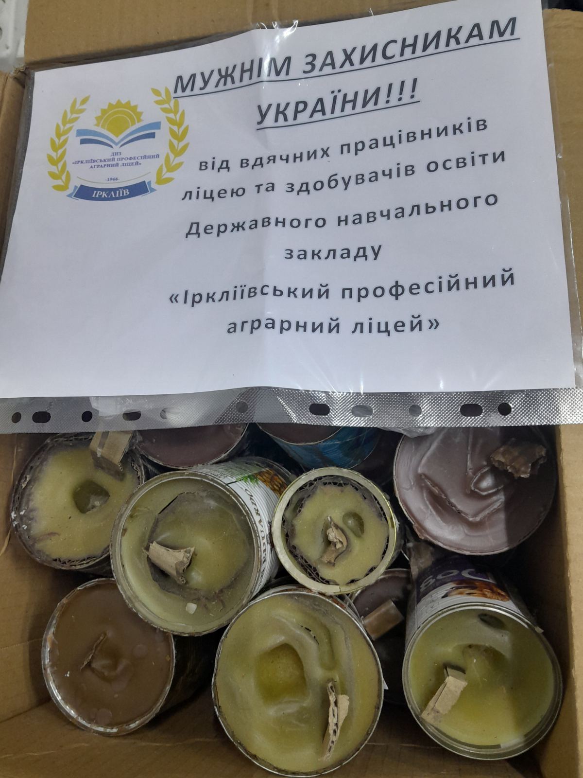 Отримали черговий фотозвіт та щиру подяку від Захисників України Державному навчальному закладі «Іркліївський професійний аграрний ліцей» за виготовлення окопних свічок.