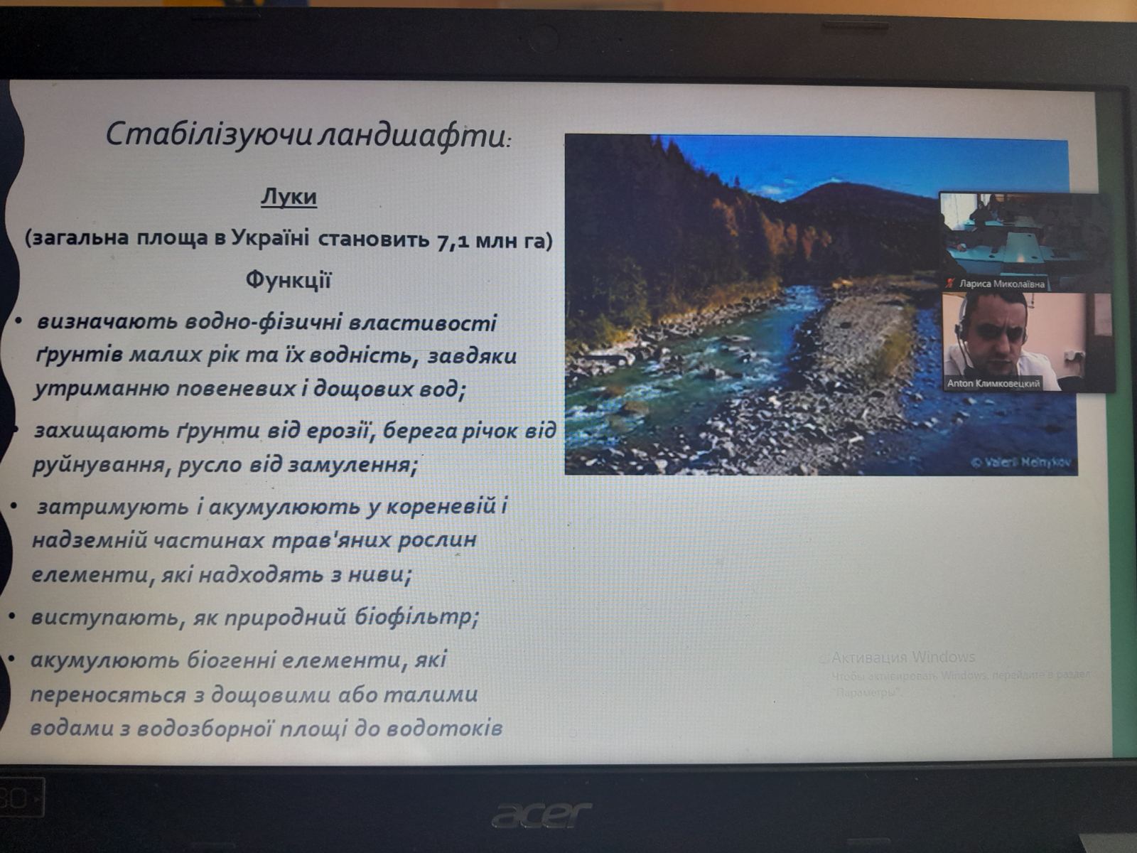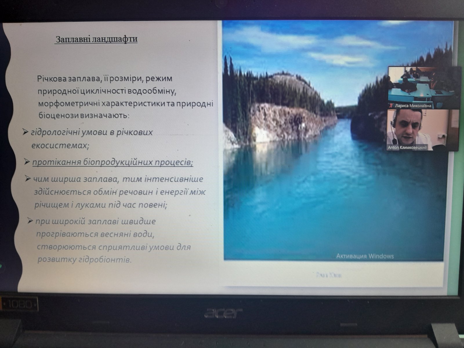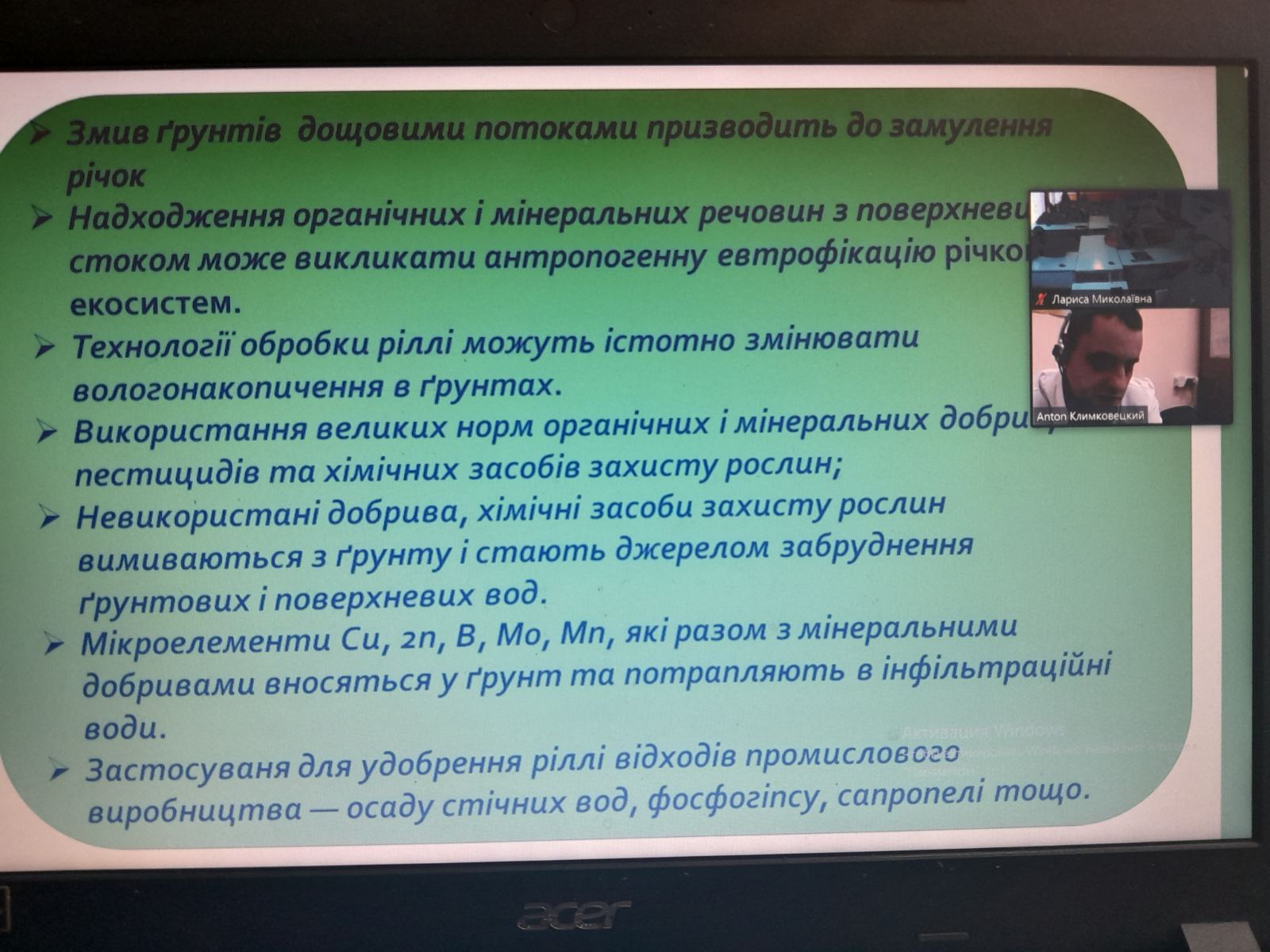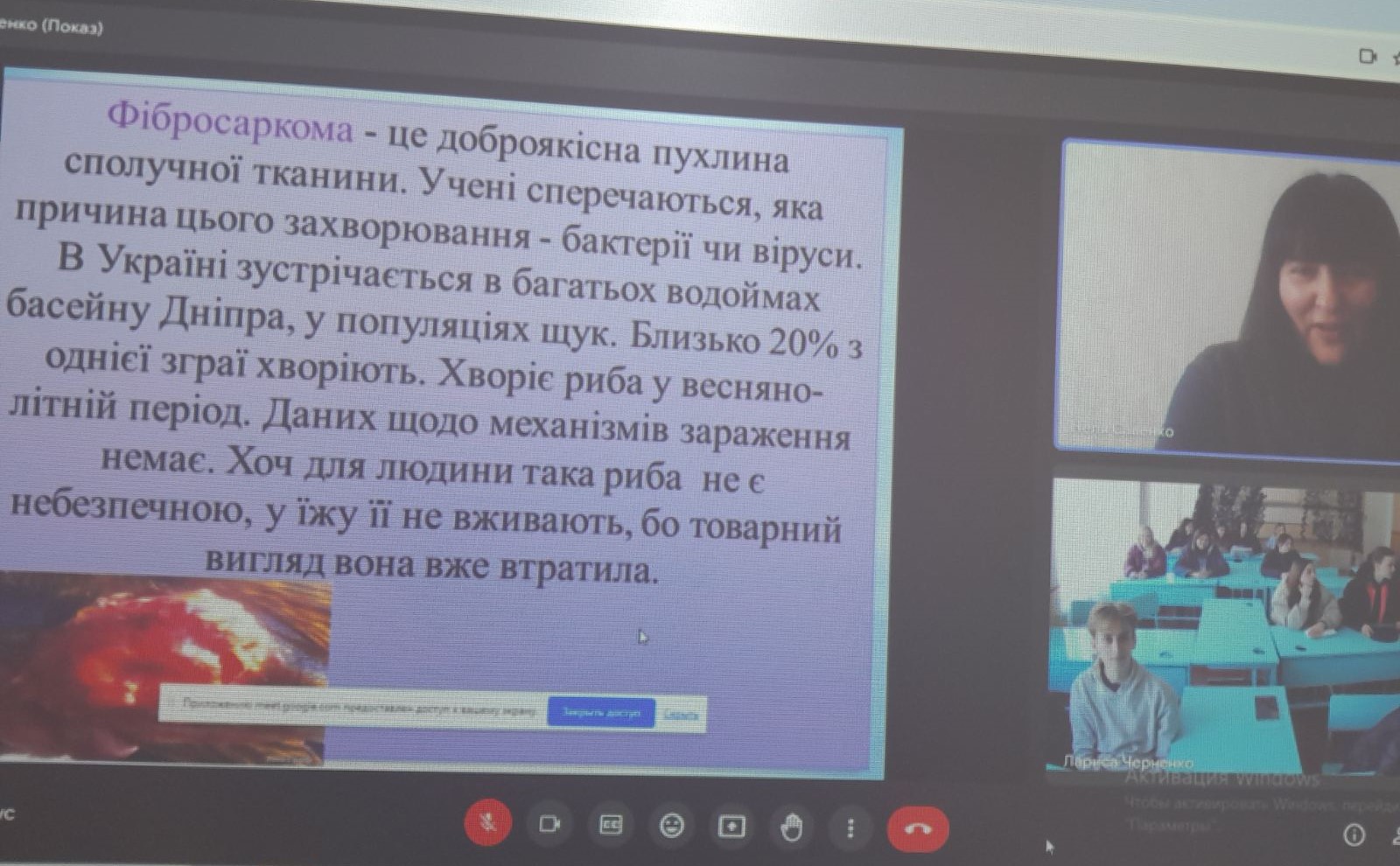 Неля Савенко, кандидат с.г. наук, ст. викладач провела заняття на тему «Охорона та збереження водойм України», розповіла про типи забруднення водойм, а також про види захворювання риб.