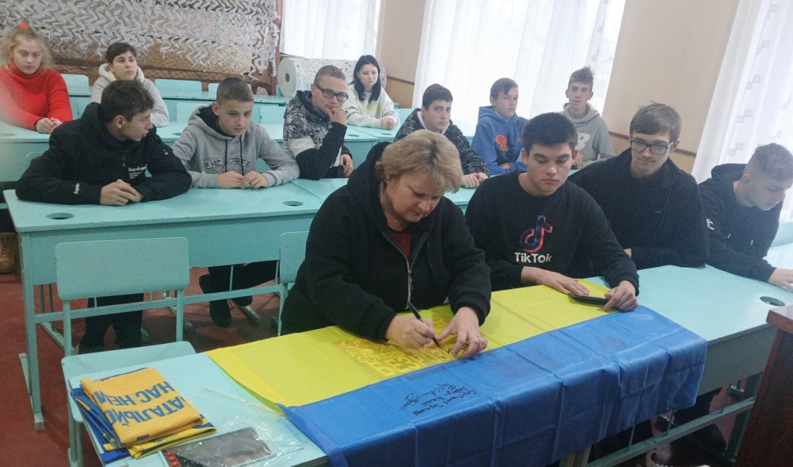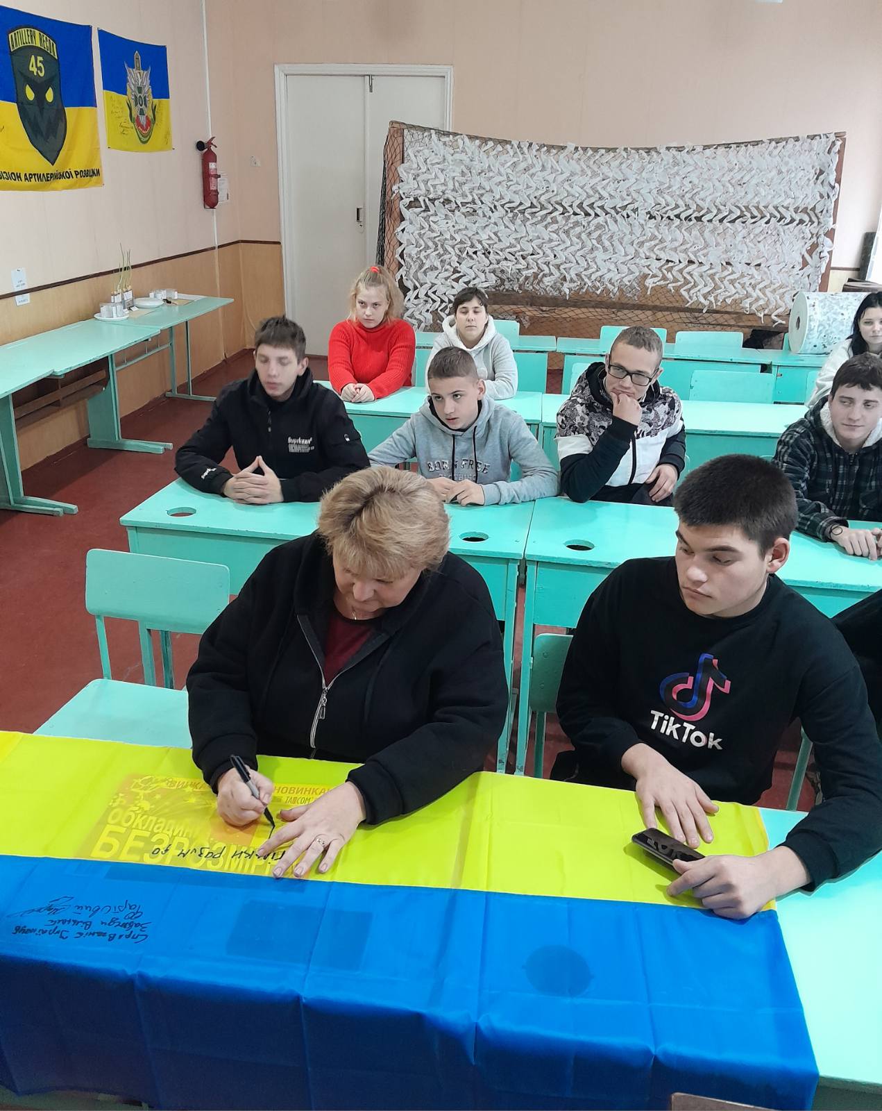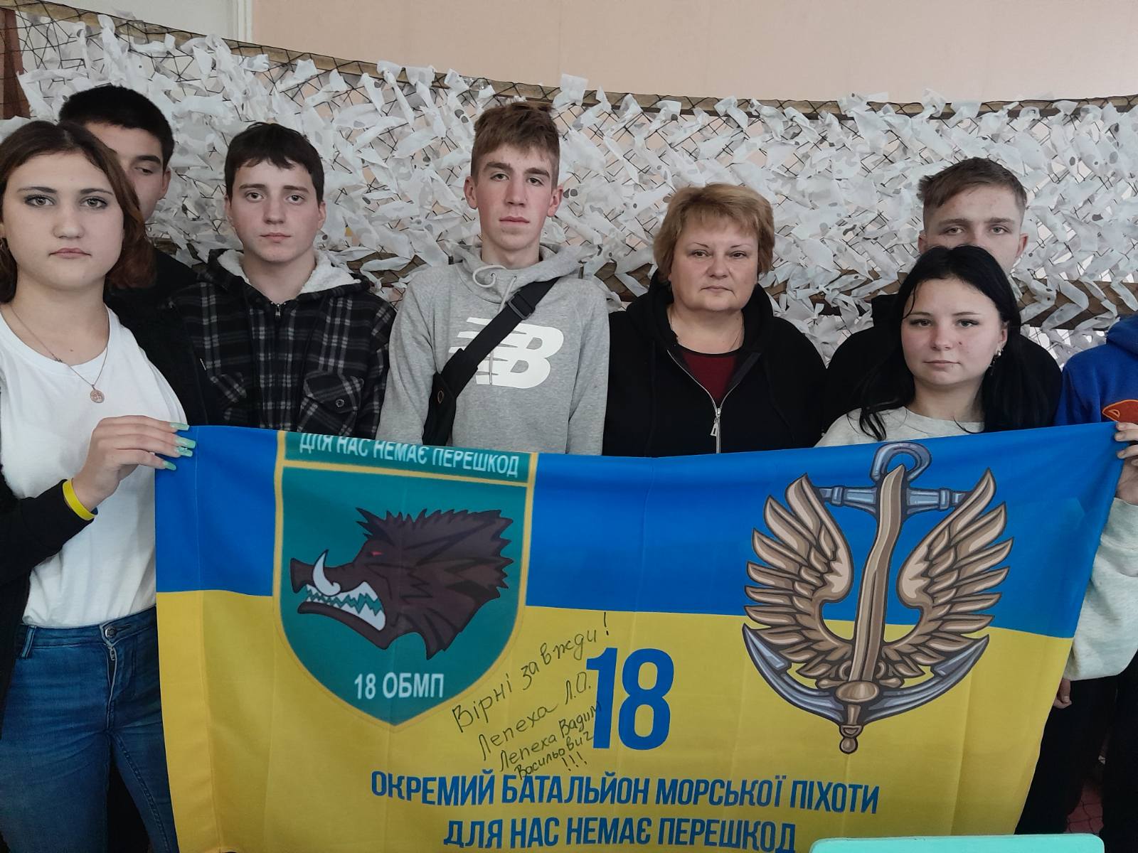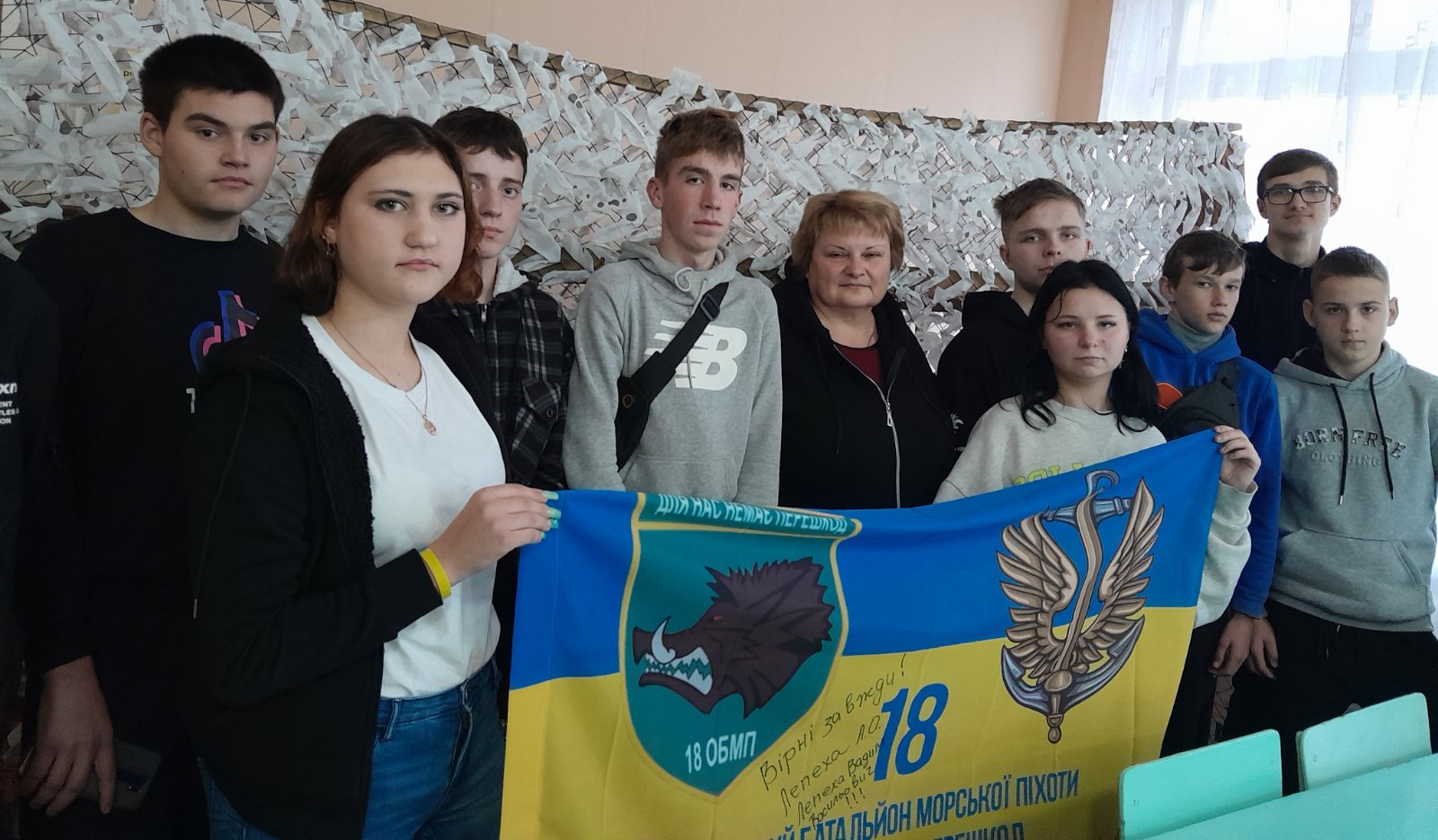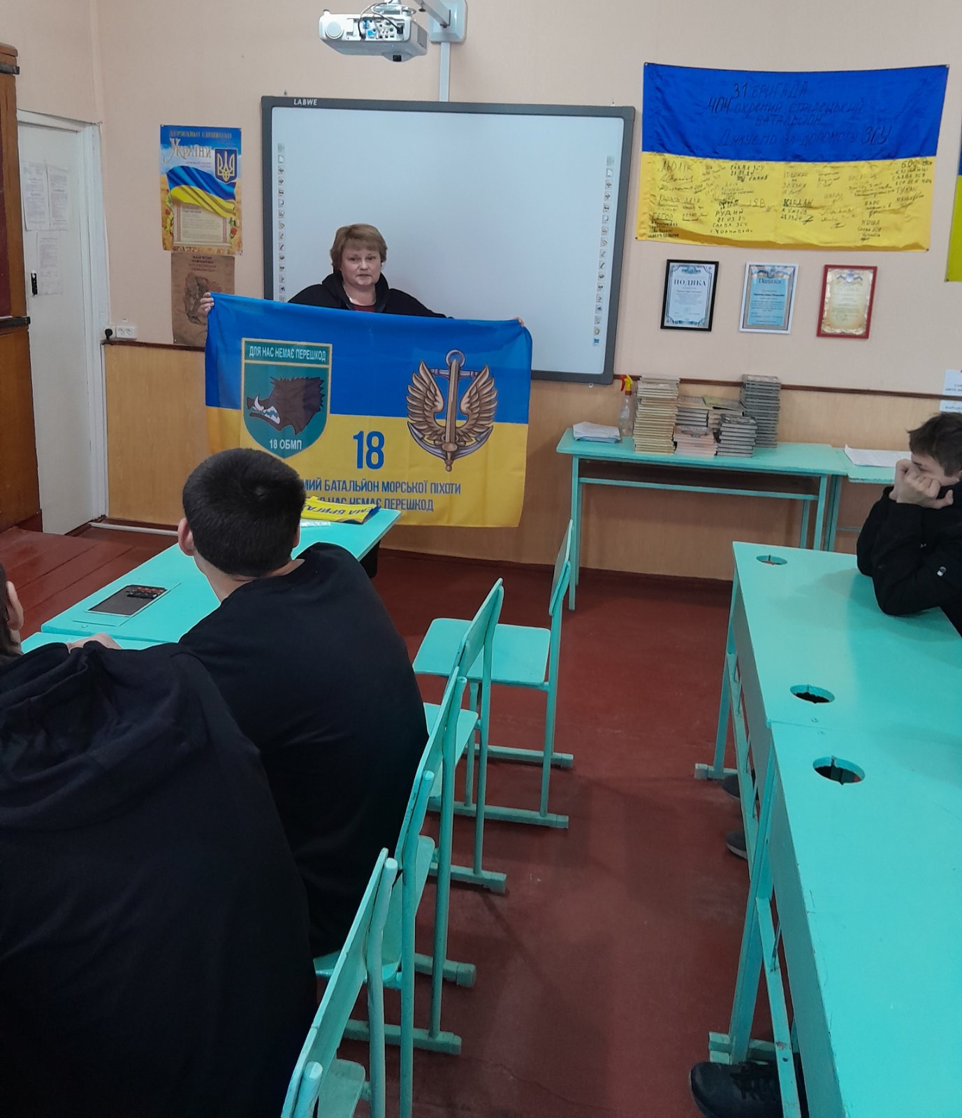 Лариса Олексіївна розповіла здобувачам освіти про бойовий шлях сина-воїна, його прагнення, плани, мрії. Спілкуючись з дітьми, вона говорила також і про свою волонтерську діяльність, напрямки роботи, потреби. Лариса Олексіївна передала ліцею бойовий прапор 18 ОБМП з девізом морської піхоти України «Вірні завжди». Під час зустрічі не в одного з присутніх з’явилися сльози…