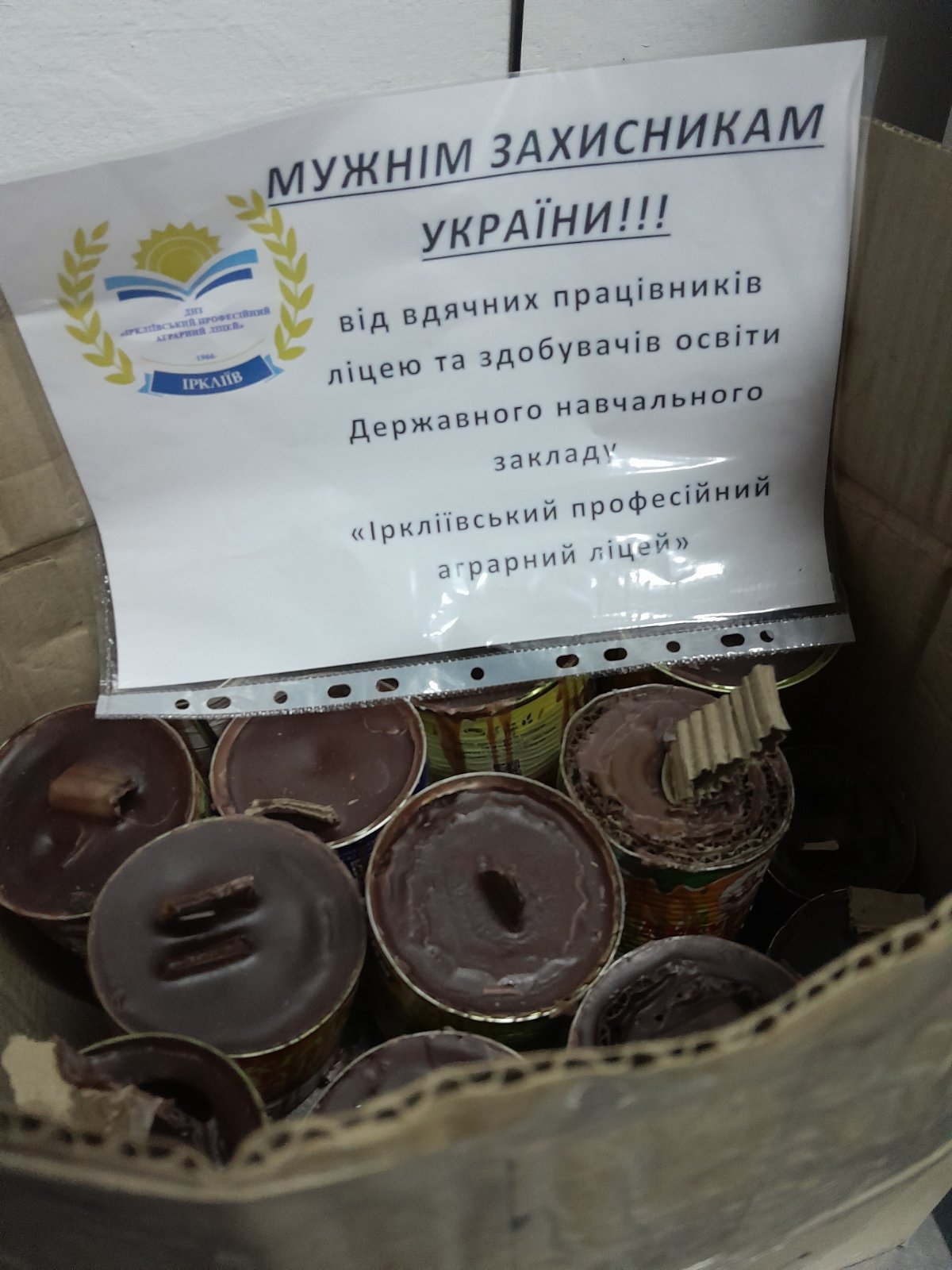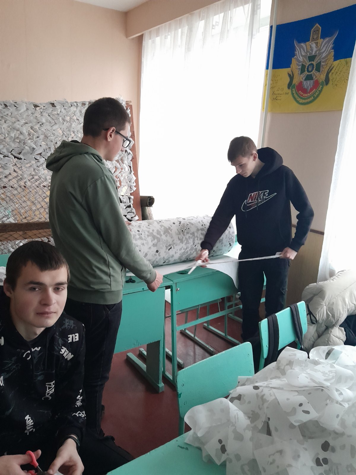 В зв’язку із зміною погодних умов, змінюються і потреби щодо кольору маскувальних сіток. Цього разу Захисникам на Схід від ДНЗ «Іркліївський професійний аграрний ліцей» була відправлена уже зимова сітка та окопні свічки. А ще – в’язані носки, коврики, чай та смаколики.