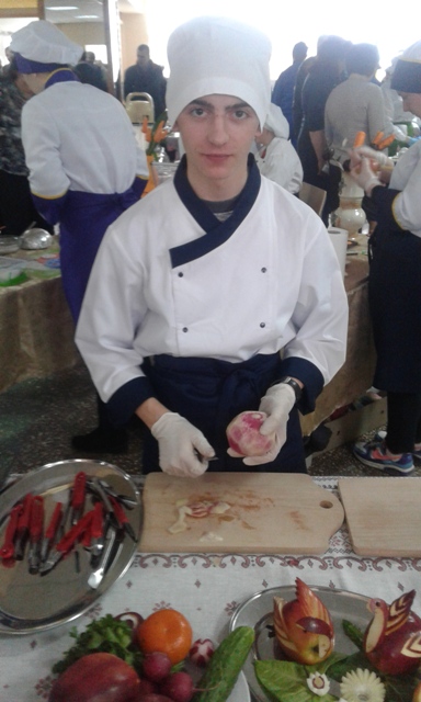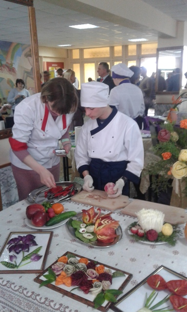 Учень групи №5, що навчається за професією «Кухар, кондитер», Довганич Роман під керівництвом викладача спец предметів Галенко О.В. показав майстер-клас для всіх присутніх з технології карвінгу.