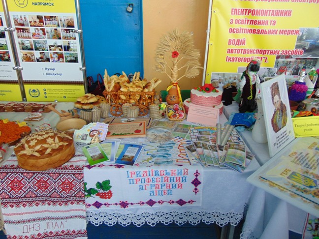 На виставці наш заклад представив роботи з питань організації навчально-виробничого процесу, методики викладання та дидактичного забезпечення загальноосвітніх предметів, професійної підготовки, з питань національно-патріотичної, виховної роботи та продукцію, яку виготовляють наші учні. Також була представлена експозиція від навчального закладу «Україна – єдина»