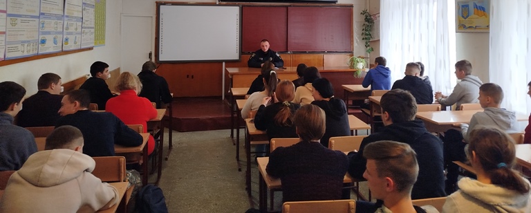 Співпраця закладу освіти з правоохоронними органами є затребуваною та актуальною. Тому в Державному навчальному закладі «Іркліївський ПАЛ» була проведена зустріч з поліцейським офіцером Іркліївської громади Куликом Вадимом Анатолійовичем. Правоохоронець розповів здобувачам освіти про їх права та обов’язки, а також нагадав про відповідальності за вчинення правопорушень. Здобувачі освіти ставили багато запитань. Особливо цікавились, яка може бути відповідальність за пропуски занять в ліцеї, за вживання слабоалкогольних напоїв та куріння. На всі запитання поліцейський офіцер дав відповіді, розповів приклади зі своєї практики. Дякуємо представникові поліції за корисну інформацію і сподіваємося, що в подальшому наші здобувачі освіти будуть компетентнішими, обізнанішими і зможуть захистити своє життя та здоров’я перед викликами сьогодення.