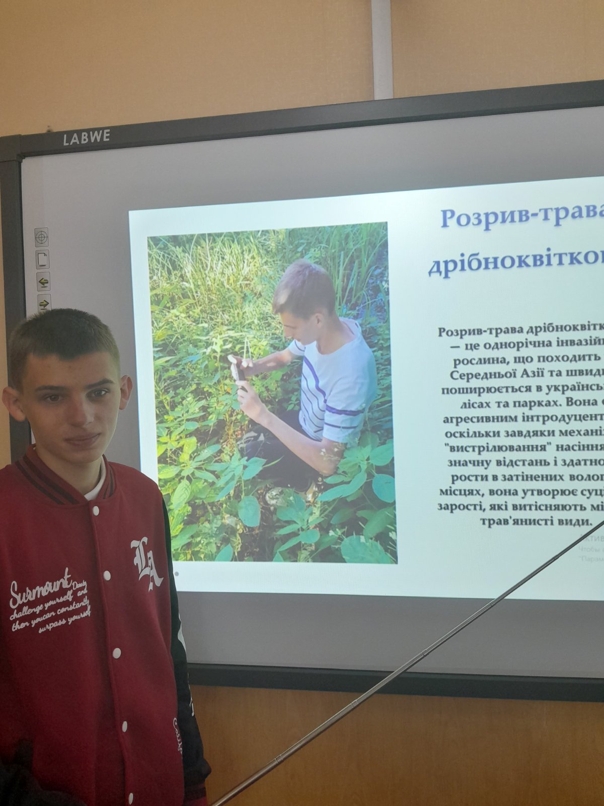 7. STEM-проєкт «Інвазійні рослини навколо нас» представив Тимур Савченко (ІІ курс). Тимур досліджував види рослин, які були завезені з інших територій та активно поширюються в Україні, конкурують з місцевими видами та негативно впливають на біорізноманіття та екосистеми, витісняючи аборигенні види та порушуючи природні процеси.
