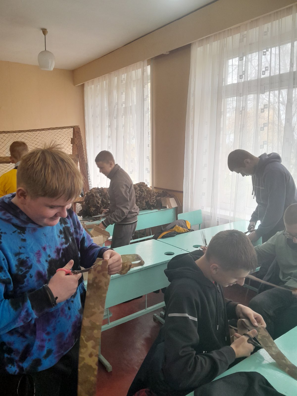 Здобувачі освіти державного навчального закладу «Іркліївський професійний аграрний ліцей» посильно долучаються до виготовлення маскувальних сіток для воїнів ЗСУ.