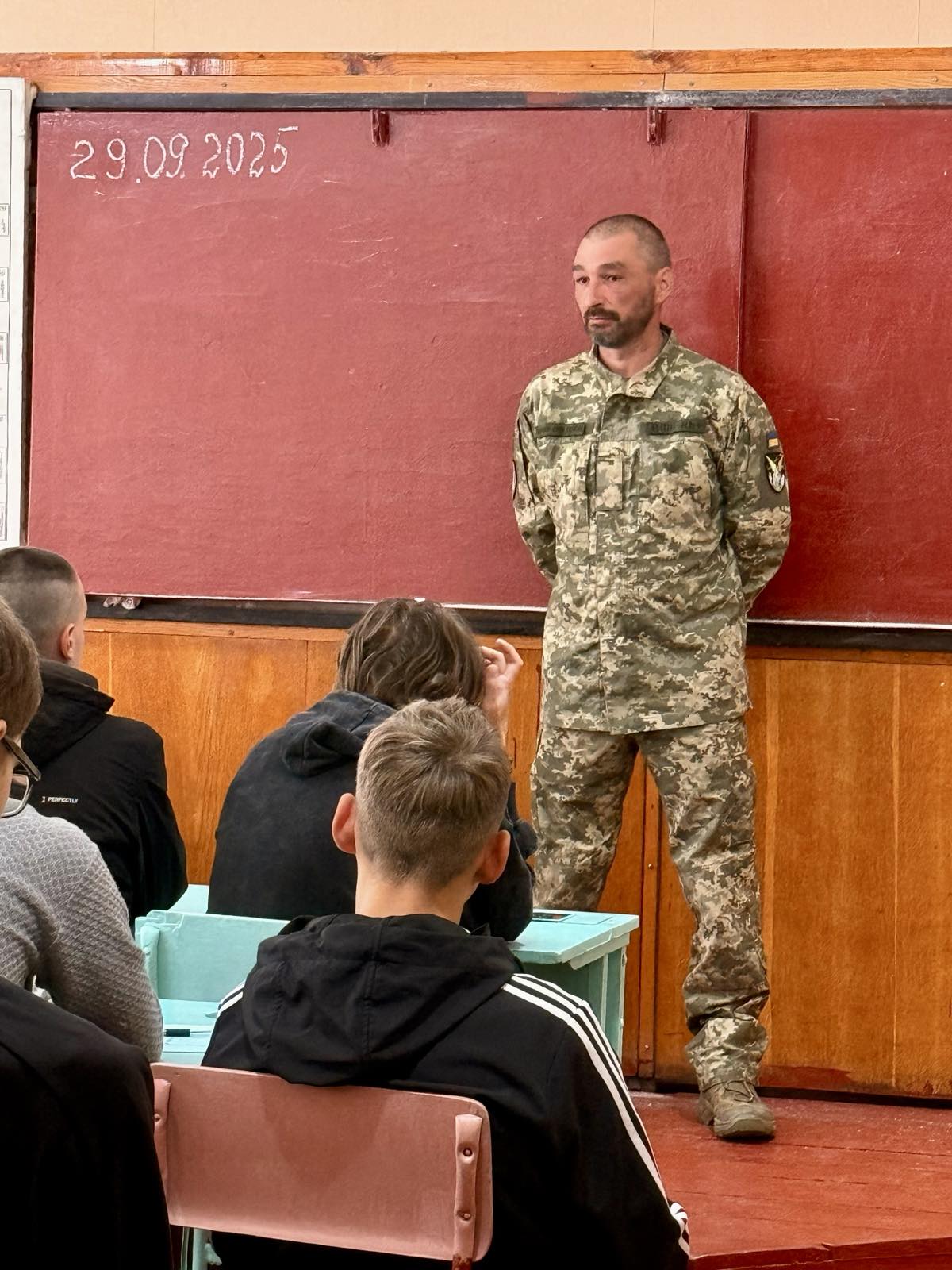 Дмитро розповів про свій бойовий шлях, починаючи від АТО до сьогодення. Здобувачі освіти із захопленням слухали розповіді воїна про бойові будні та братерство, про отримані нагороди, а також про різні види озброєння, до медичну допомогу, важливість фізичної підготовки та багато іншого. Дітям було цікаво все, вони задавали безліч запитань.