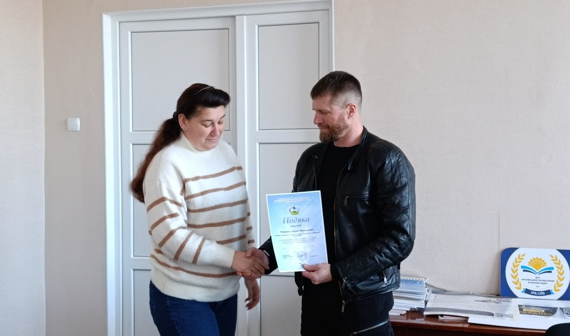 Викладачка ДНЗ «Іркліївський професійний аграрний ліцей» Лариса Миколаївна Черненко отримала подяку від Національного еколого-натуралістичного центру учнівської молоді за підготовку фіналіста Всеукраїнського біологічного форуму учнівської та студентської молоді «Дотик природи 2025» Тимура Савченка.
