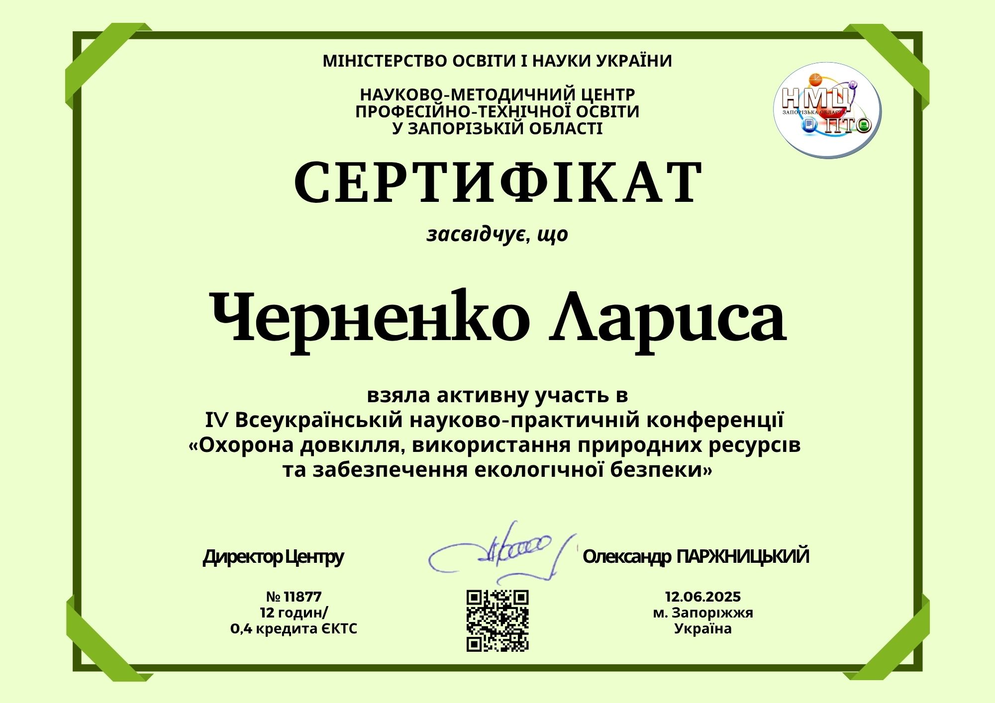 Конференція проходила дистанційно, організатором виступив НМЦПТО в Запорізькій області. Від ДНЗ «Іркліївський професійний аграрний ліцей» участь в конференції взяла викладачка хімії, біології і екології Лариса Миколаївна Черненко.